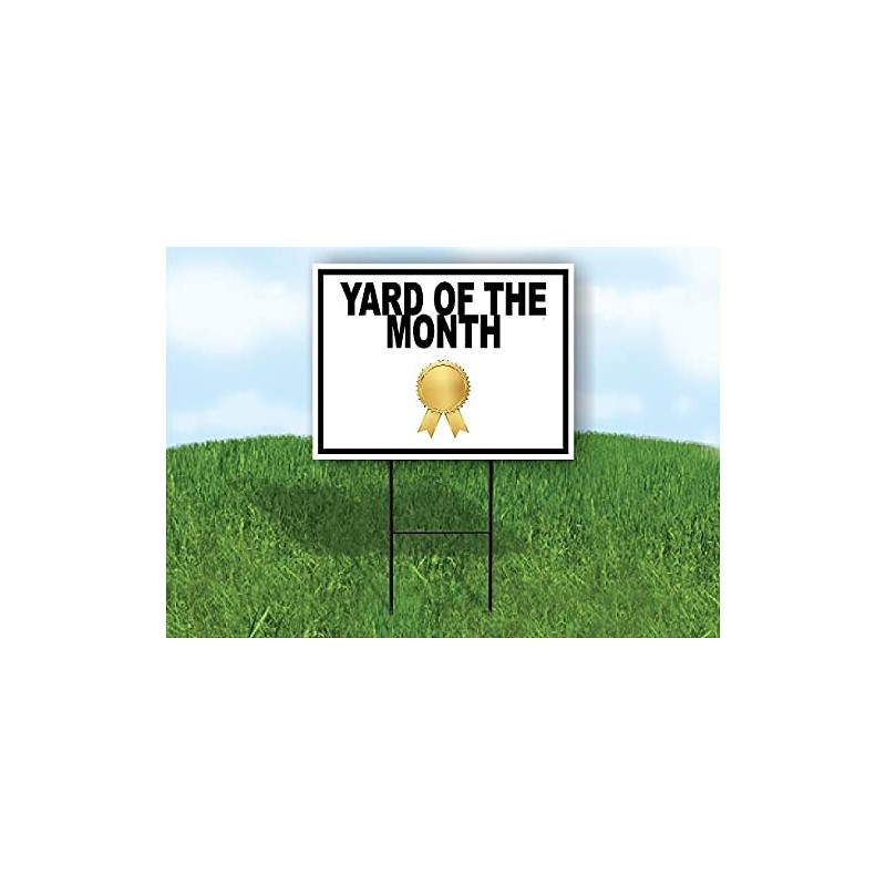 YARD OF THE MONTH BLACK GOLD RIBBON - Single Sided Yard Sign ROAD SIGN with Stand