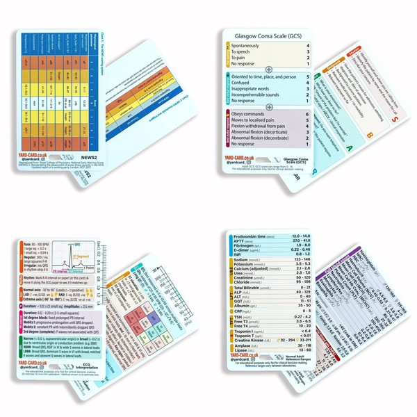 YardCard YardCard - Medical Reference Card Set: ECG, Blood Test Ranges, Glasgow Scale, SBAR, & NEWS2 | Ideal for Medical & Nursing Students, Paramedics