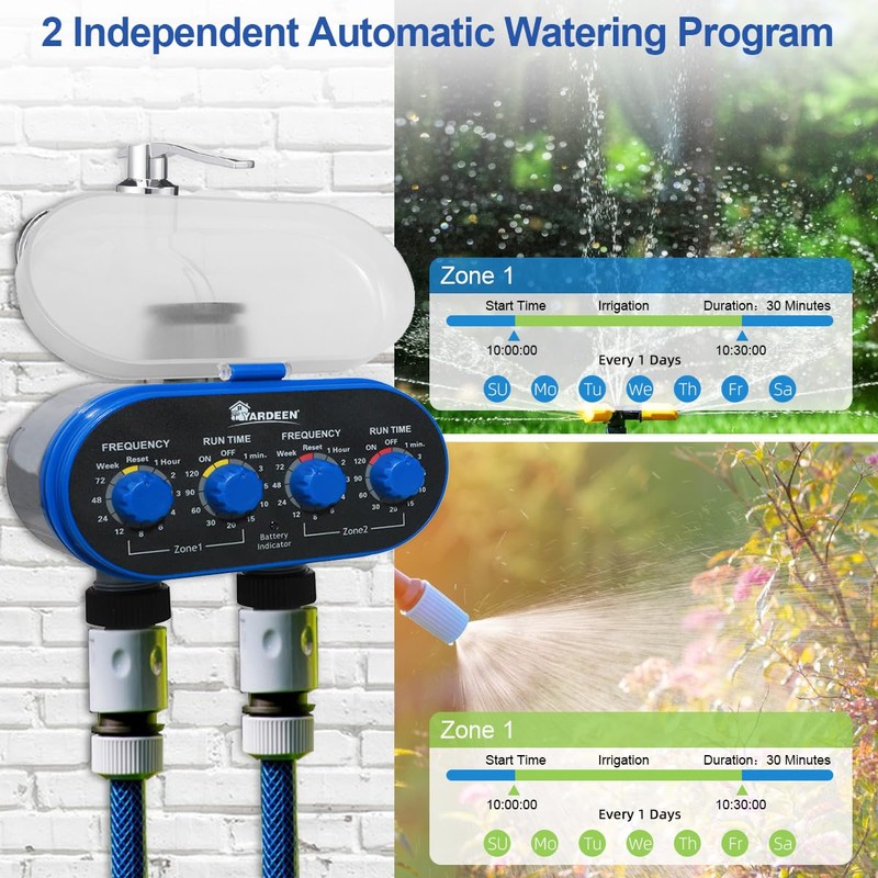 Yardeen Dual-Valve Hose Water Timer Sprinkler Timer Irrigation Controller Ball Valve