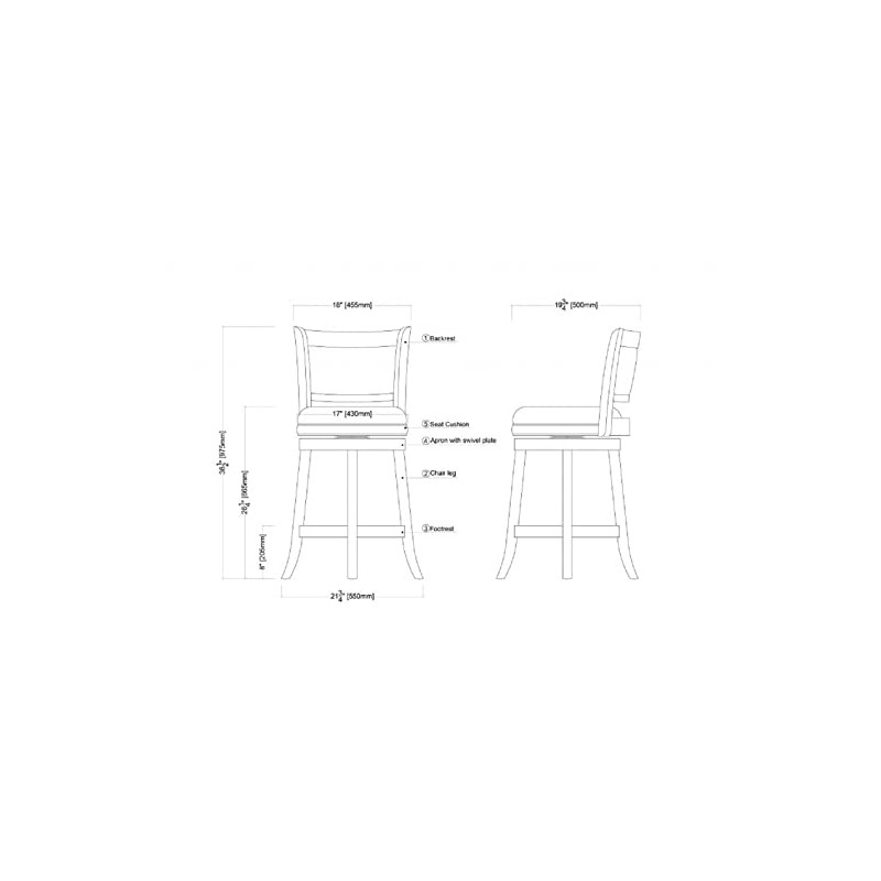 The Augusta Swivel Counter Stool is a well-crafted and stylish seating option that prioritizes safety, durability, and design. Its round swivel seat, contoured back, and footrest ensure maximum comfort during extended meals. The stool's 360-degree ball-bearing swivel plate guarantees long-lasting durability. Made from solid hardwood with stability stretchers that double as a footrest, this stool is built to withstand the test of time. The seat and back are upholstered in fire-retardant high-density foam, covered in faux leather for added elegance. With three finish options available, this stool effortlessly complements any decor, making it an ideal choice for kitchens or dining rooms.