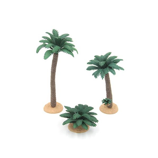 YARDWE 3pcs Small Coconut Palm Tree Model Green Plastic Faux Fish Tank Plants Model Scenery Palm Tree Craft Statue for Micro Landscape Fairy Garden Decor 7.31×3.54 Inch