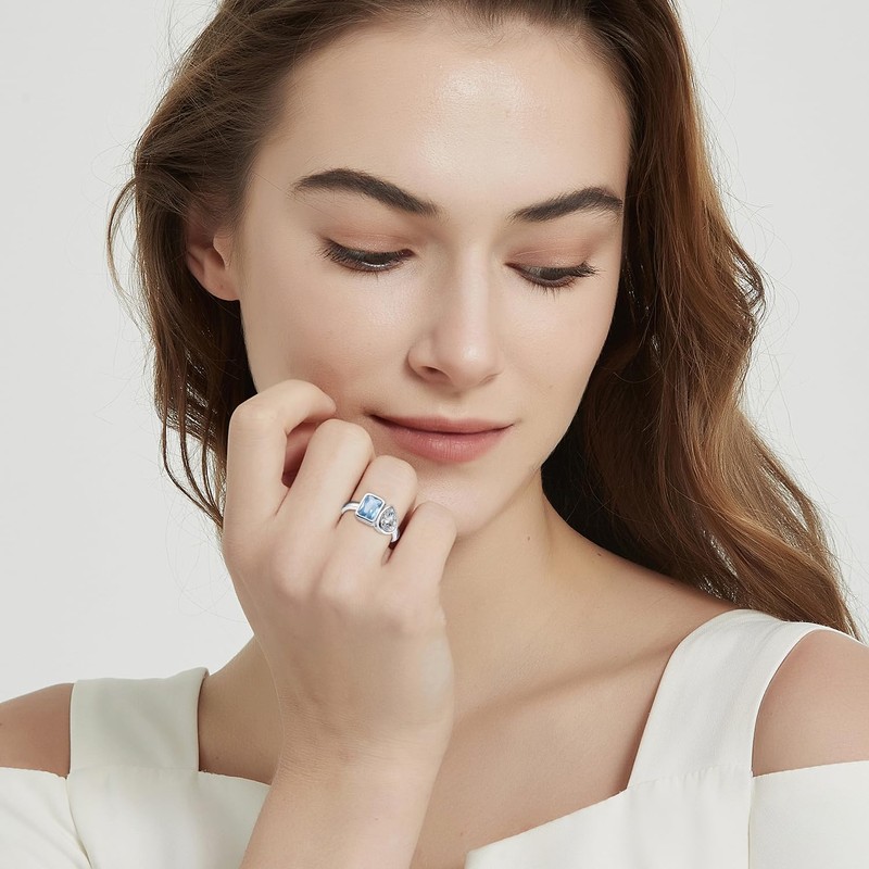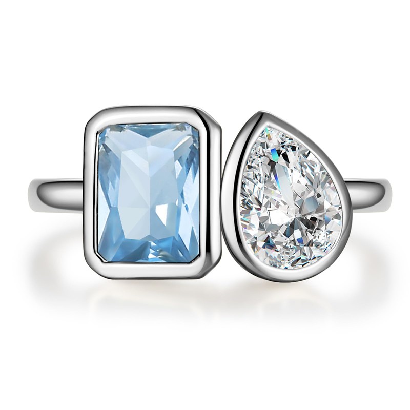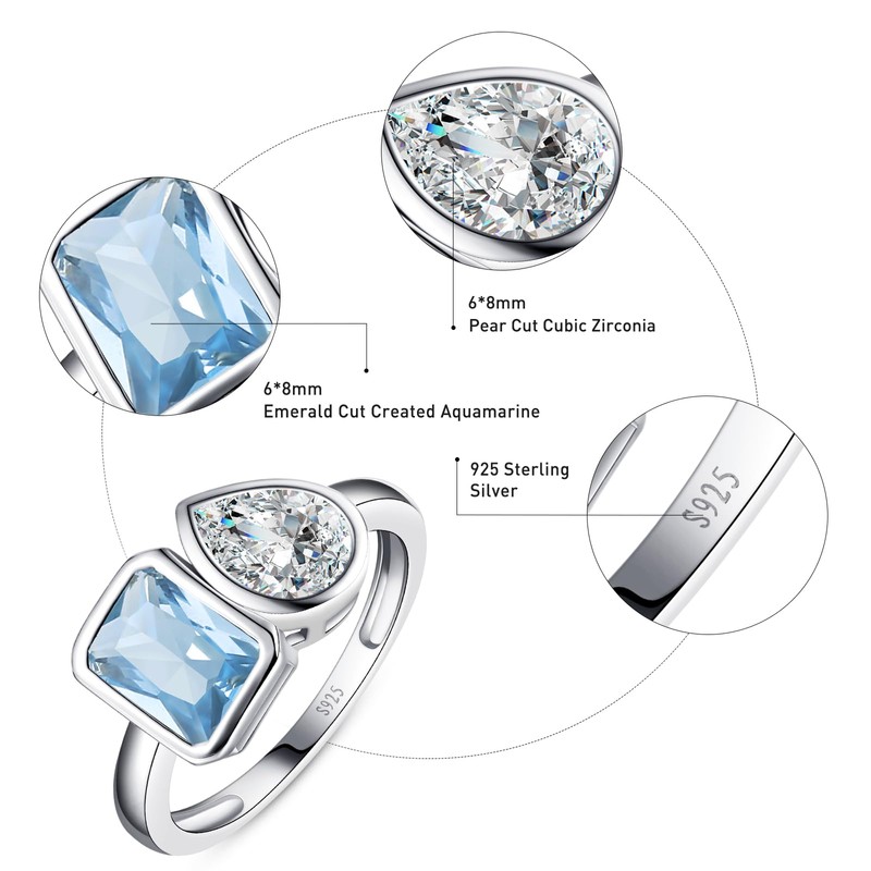- Exquisite Design: This Yaresul Toi Et Moi Ring showcases a stunning combination of two 6x8mm gemstones - a shimmering emerald shape cut created aquamarine stone and a pear cut cubic zirconia stone. The unique "toi et moi" design symbolizes the unity of two souls, making it a perfect engagement ring for women.