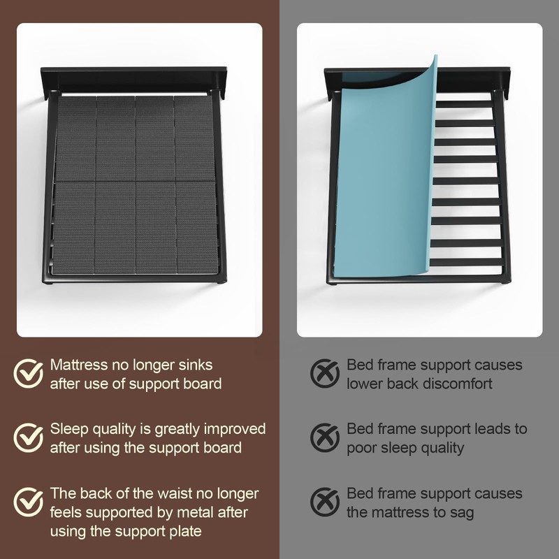 - SUPER HARD AND INCREASED THICKNESS:The support plate is made of 10mm medium density groove board, thick enough to support three adults' weight easily.