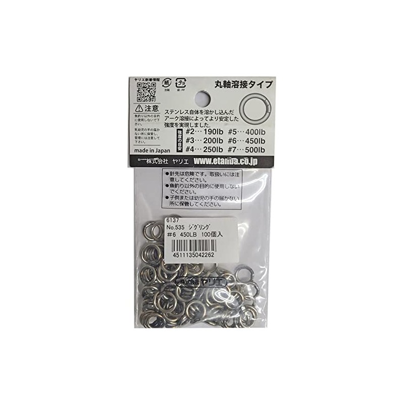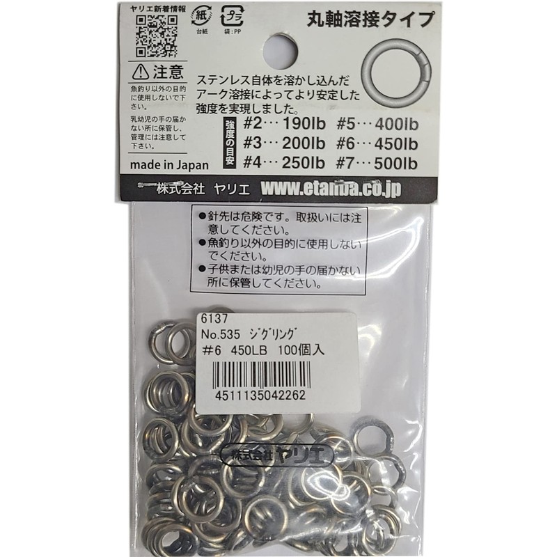 YARIE(ヤリエ) スプリットリング ジグリング No.535 バリューパック100個入 #6 450LB.