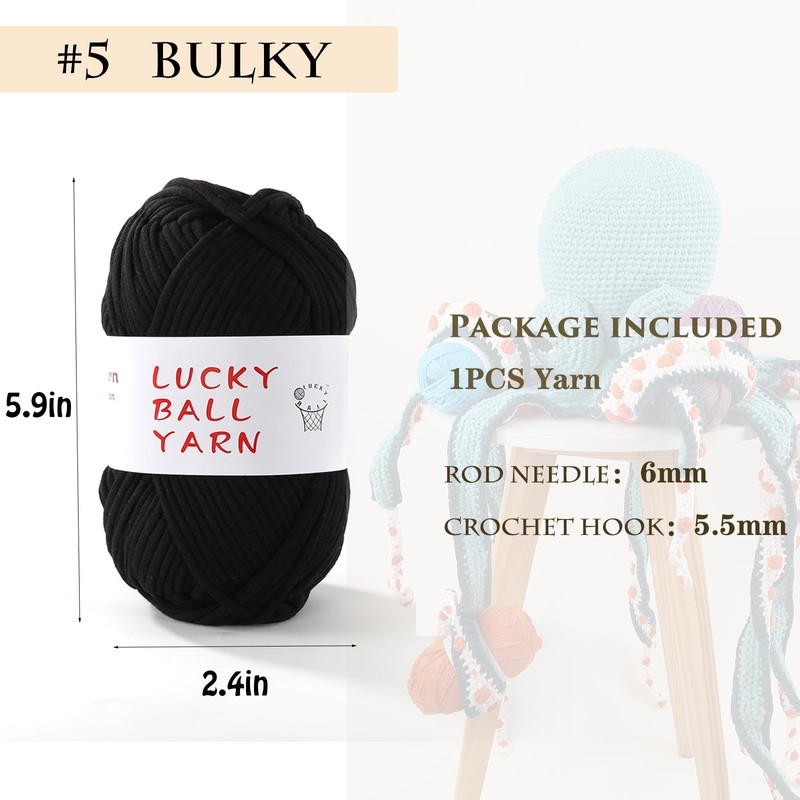 - Size And Weight:This yarn for crocheting is 3.53 oz/100g, 109 yards/100m, #5 Bulky,package includes 1PCS crochet yarn,No Crochet hook.Rod needle size:6mm,Crochet hook size:5.5mm.