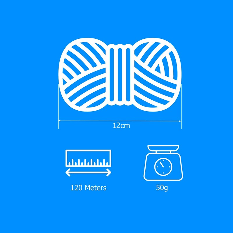 - 50g, 120 meters (approximately equal to 131 yards); suggested knitting needles size 2-3mm, crochet hook size 6/7 or 2.5-3mm