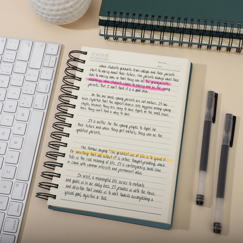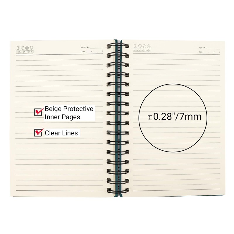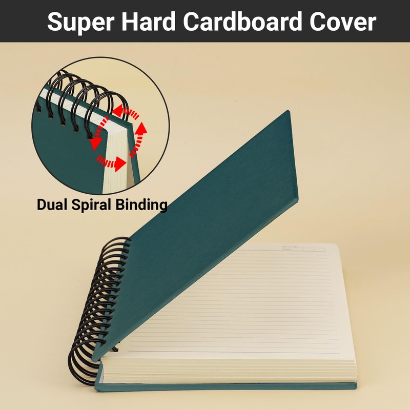 - Sturdy spiral binding--- This A5 notepad features a durable double wire binding that allows it to lie completely flat, effortlessly turn pages and provide a long-lasting writing experience.