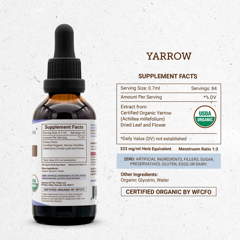 Yarrow USDA Organic | Alcohol-Free Extract, High-Potency Herbal Drops Soothes The Body | Made from 100% Certified Organic Yarrow (Achillea millefolium) Dried Leaf and Flower 2 oz