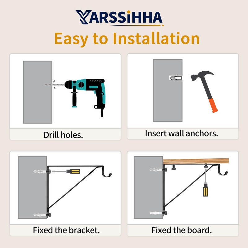 Installation Guideline: Comes with all installation hardware (Board is NOT included), the closet shelf and rod brackets are quick and easy to install. Brackets for closet can be used on most walls, such as cement wall, ceramic tile wall, brick wall, solid wall.