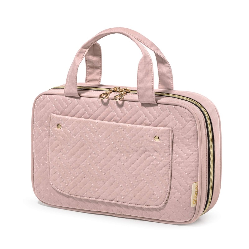 YARWO Knitting Needles Case (up to 27 cm), Crochet Hooks Organizer with Double Handle for Circular Knitting Needles and Knitting Accessories, Dusty Rose (Bag Only)