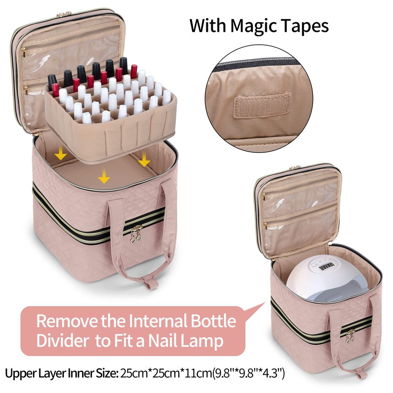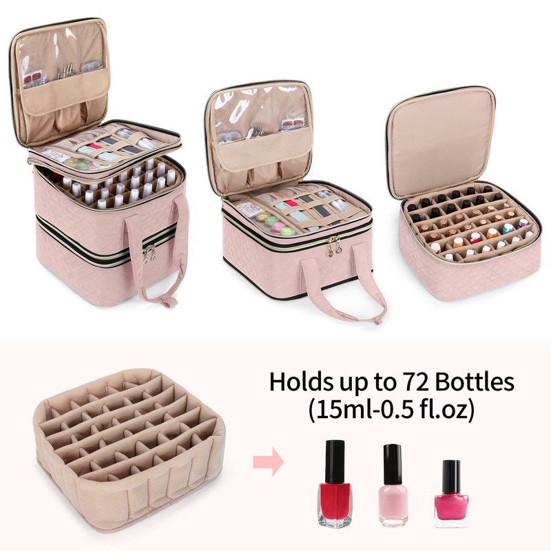 Yarwo YARWO Nail Polish Organizer Case Holds 72 Bottles (15ml/0.5 fl.oz), Detachable 3 Layers Nail Polish Storage Bag with Removable dividers for Nail Lamp and Nail Art Manicure Tools, Dusty Rose (Bag Only)