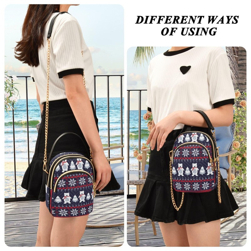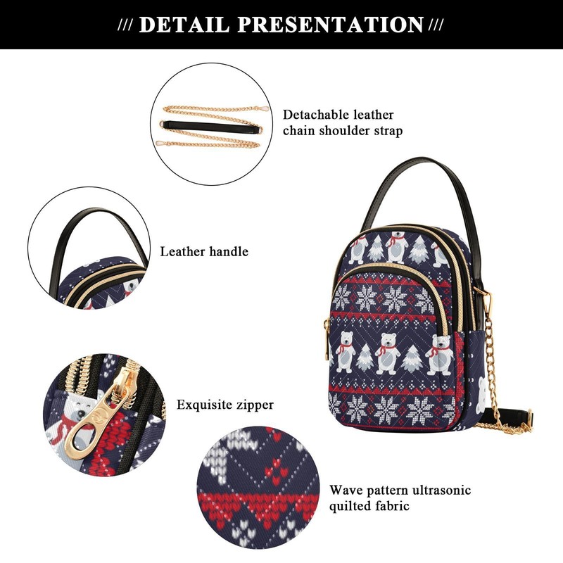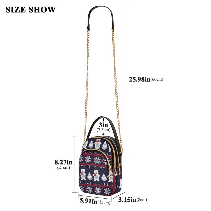 Yasala Christmas Cell Phone Purse Polar Bear Pine Tree Snowflake Crossbody Handbag Durable Shoulder Bag Sturdy Travel Pouch Compact Chic Bag for Women Everyday Use Holiday Gift