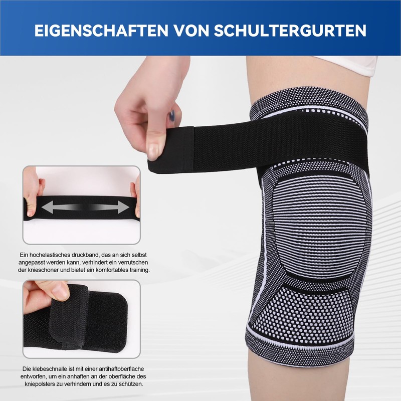 - Anti Slip Design There are two wavy anti slip strips on the inside of the top of the knee brace, with an adjustable pressure band and double anti slip design, which will not slip or roll up during daily wearing and exercise, strengthening the support for the knee joint. Make your exercise more comfortable and improve exercise efficiency.