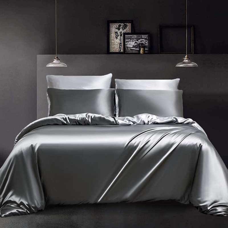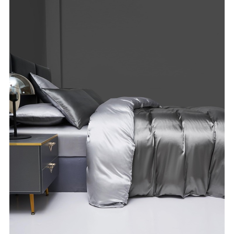 YASMENG Satin Bed Linen 135 x 200 cm Grey Dark Grey Light Grey Reversible Bed Linen Deluxe Bed Linen Satin Soft Smooth Shiny Silky Silk Bed Linen 2-Piece with Zip and 80 x 80 cm Pillowcase