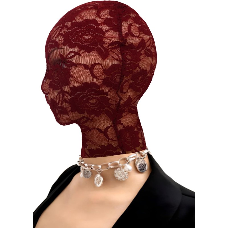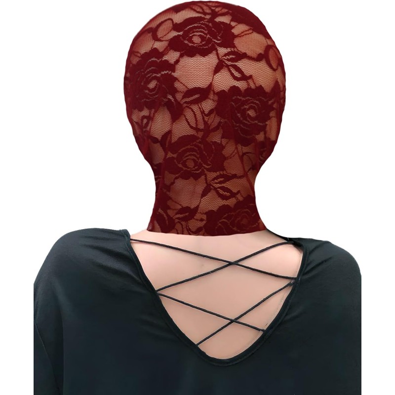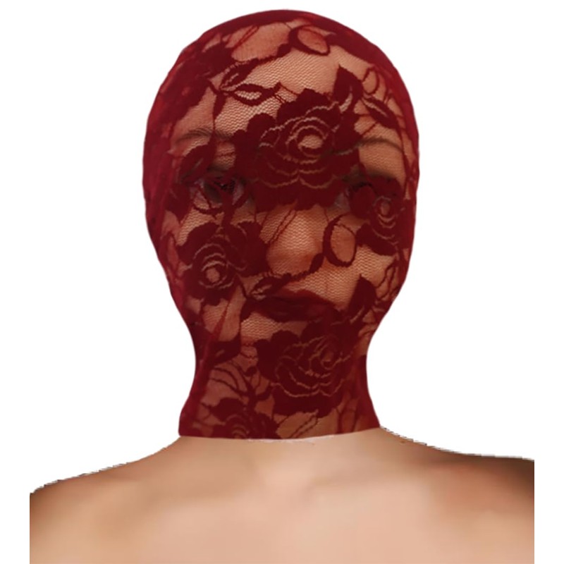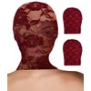 YASOKEZO 2Pcs Womens Red Full Face Lace Mask Masquerade Party Hollow Out See Through Lace Hood