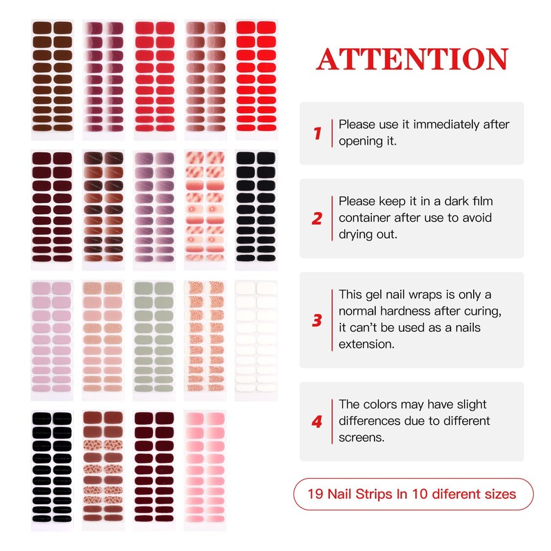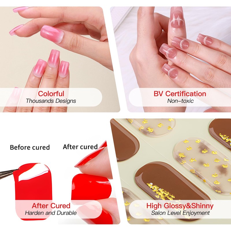- Versatile & Stylish: Choose from a variety of trendy colors and designs to match your style. We have something for everyone and every occasion (shopping, dating, friends gathering, wedding, gifting, Christmas or simply at home). Our semi-cured gel nail strips allow you to switch up your look as often as you like, keeping your nails looking fabulous all year round.