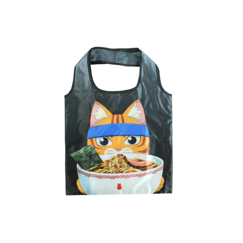 Yasuda Tsusho Red Cat Ramen Eco Bag with Storage Pouch Bunzo RA Eco Bag 02 Approx. H 14.8 x W 17.9 inches (37.5 x 45.5 cm)