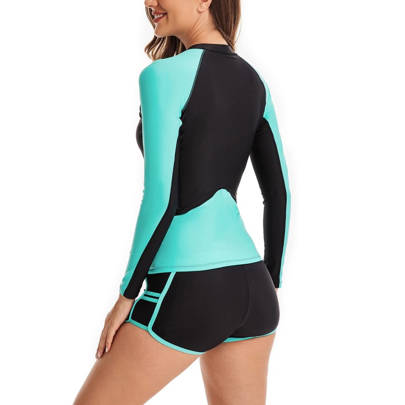 Long sleeve rashguard and crew neck design, easy to take off & on even when get wet