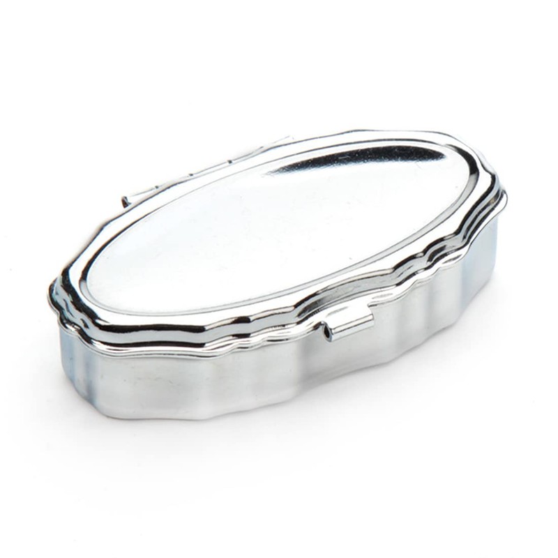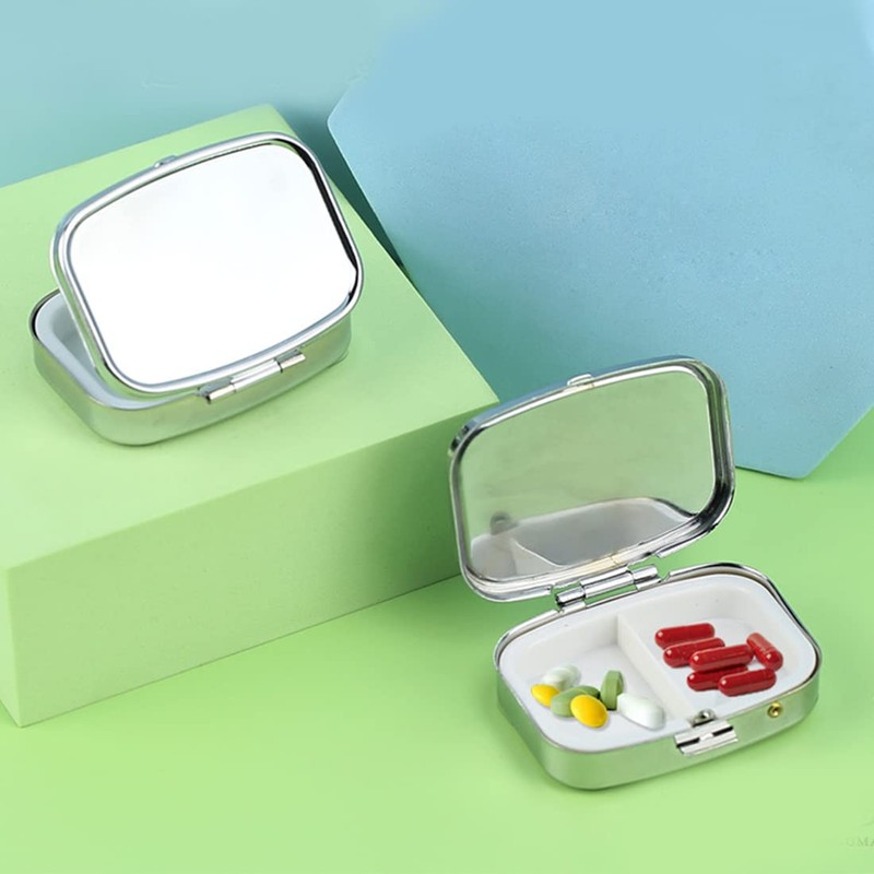 - Details: 2 silver stainless steel pill boxes included. The outer dimensions of the multi-compartment container are 5.5 x 4 x 15 cm. The internal divider measures 0.9 x 1.25 inches.