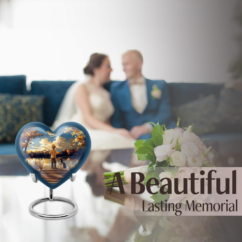 YATHABHISA Heart Urns for Ashes, Keepsake Urn for Human Ashes, Fisherman Funeral Cremation Urns for Human Ashes, Memorial Gift for Brother, Blue, 3 Inch