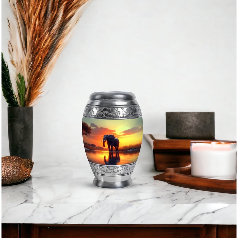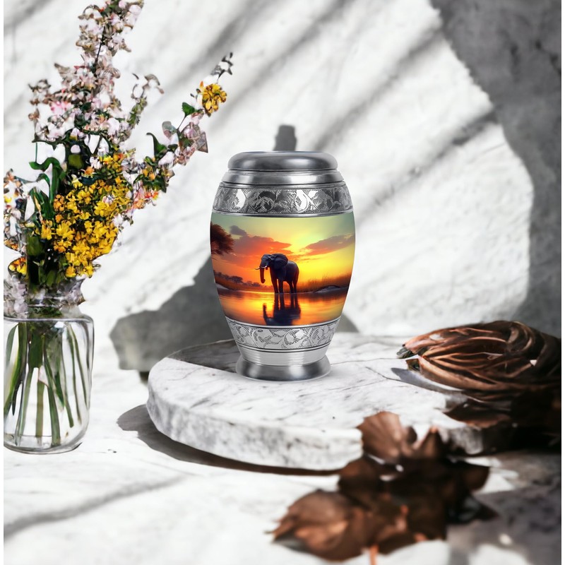 - Elephant Detail - The Elephant artwork brings a gentle presence to the urn, symbolizing beauty, hope, and the fleeting yet meaningful nature of life.