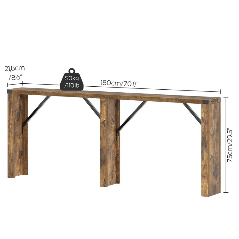 YATINEY Console Table, 70.8" Long Behind Couch Sofa Table, Entryway Table, Farmhouse Console Table for Narrow Spaces, Hallway, Living Room, Rustic Brown CT31BR