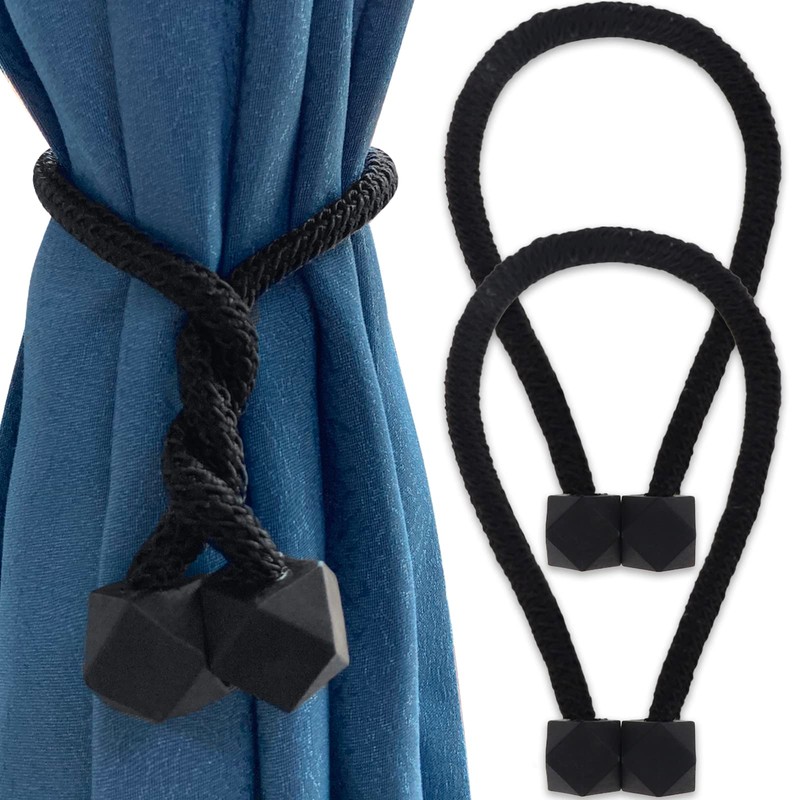 Yatinkim 2 Pack Magnetic Black Curtain Tiebacks Drapes Ties Window Draperies Holdbacks Twist Rope Modern Style Decorative Accessories Home Bedroom Dining