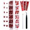 Yatinkim 810pcs Red Nail Art Rhinestones Set Crafts Eye Face Gems Nail Jewels Manicure Charms Design Makeup Supplies Accessories Shiny Wax Pencil