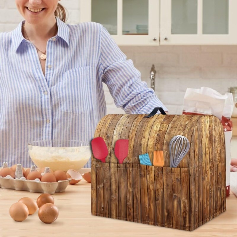 Yatixapu Stand Mixer Cover for Kitchen Aid Mixers Accessories Compatible with 6-8 Quart, Wood Grain Mixer Cover for Stand Mixer with Pockets, Suitable for Kitchen Mixer Cover