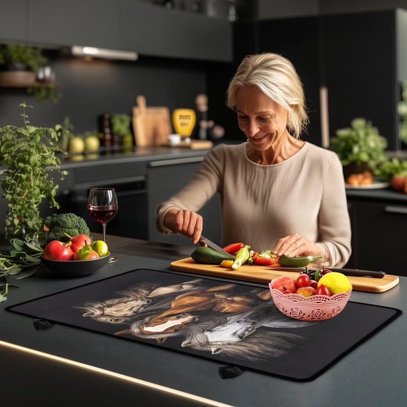 Yatixapu Stove Top Cover for Electric Stove, 20.96 x 29.18 Inch Three Horses Silicone Stove Top Cover, Anti-Slip Mat for Glass Stove Top Protector Dish Drying Pad Foldable Cooktop Cover