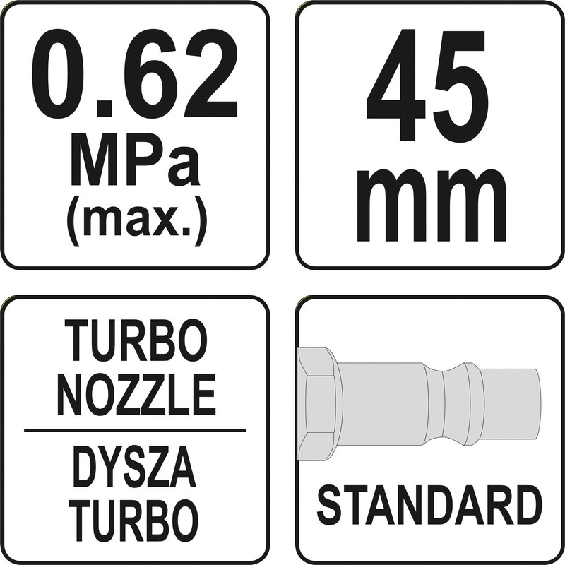• Details: compressed air blow-out gun, with innovative Venturi turbo nozzle, 4 x higher air volume than conventional blow-out guns, material: high-quality plastic, operating pressure: 6.2 bar (0.62 MPa), 1/4 inch standard connection