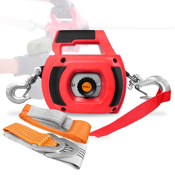 - 👍Multiple Uses - The drill winch uses 360°rotary hooks, is powered by a standard portable drill bit, and does not need to be plugged in. The winch with 2 straps can be used in a variety of traction scenarios, such as log handling, lawn mower handling, guardrail stretching, snowmobile handling, etc.