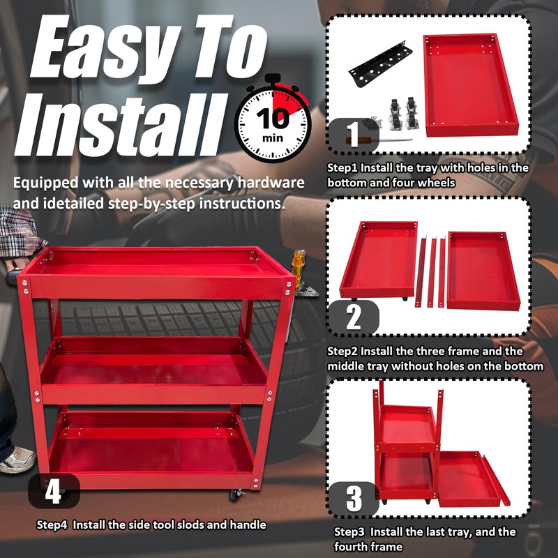- 🛠️【Three Layers Practical Shelves】Easy to transport supplies, tools and goods; Each shelf has a deep basin style to help store items safely and stably.