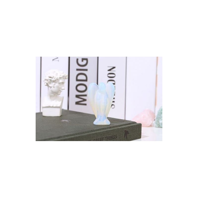 YATOJUZI 2''Opal Angel Decor Crystal Natural Stones Polished Hand-Carved Big Sculpture Statue Figurines Home Office Desk Decoration Healing Crystal for Women Men