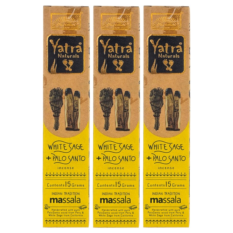 Yatra Naturals 8" Handcrafted Incense 15g Packs - Choose Your Scent (White Sage + Palo Santo 3-Packs)
