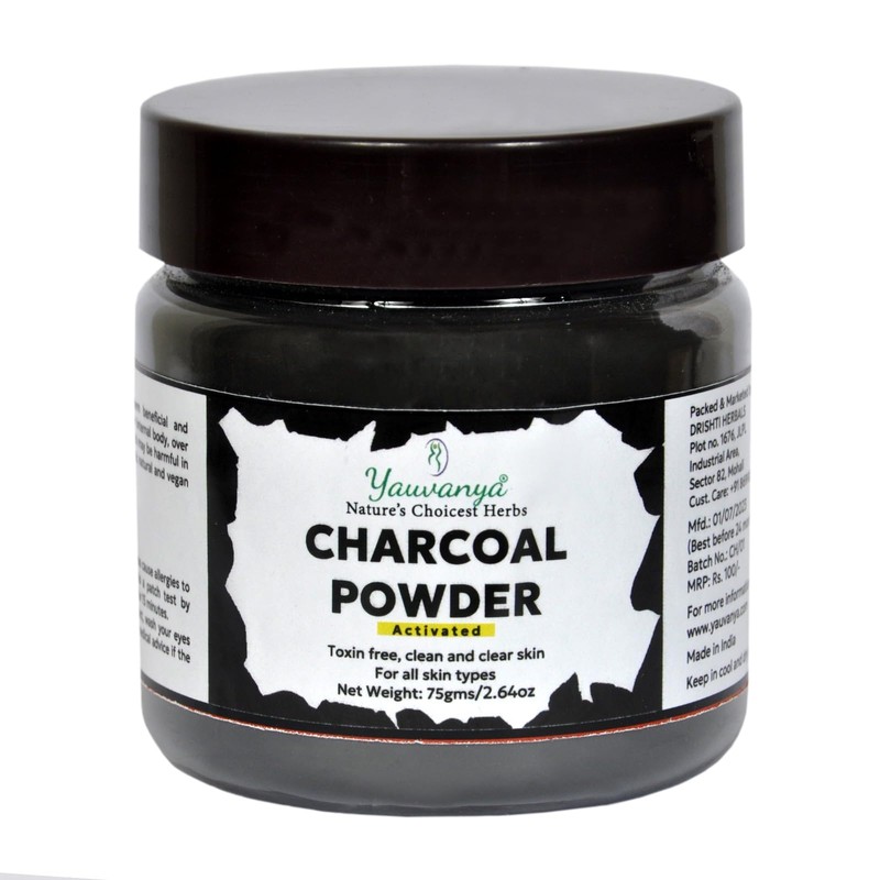 Yauvanya Activated Charcoal Powder - 75 gms | Face Mask | Skin Detox
