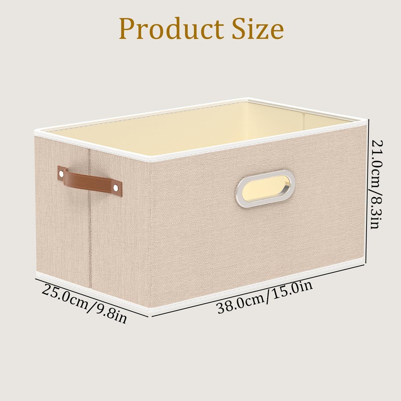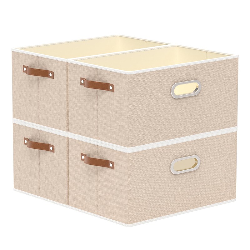 Yawinhe Collapsible Storage Box, Cube Storage Basket, Fabric Foldable Storage Bins Organizer Containers with Dual Leather Handles for Home Bedroom Closet Office,15.0 x 9.8 x 8.3 Inch, (Beige, 4-Pack)