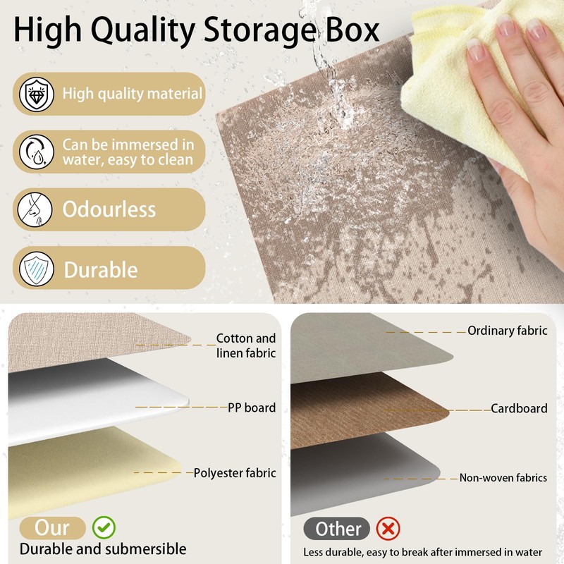 - Material: The storage organizers are supported by pp board to ensure a rigid structure, no odour and allows storage box to be washed when it gets dirty, With inner surface of oxford cloth, much more sturdy and durable