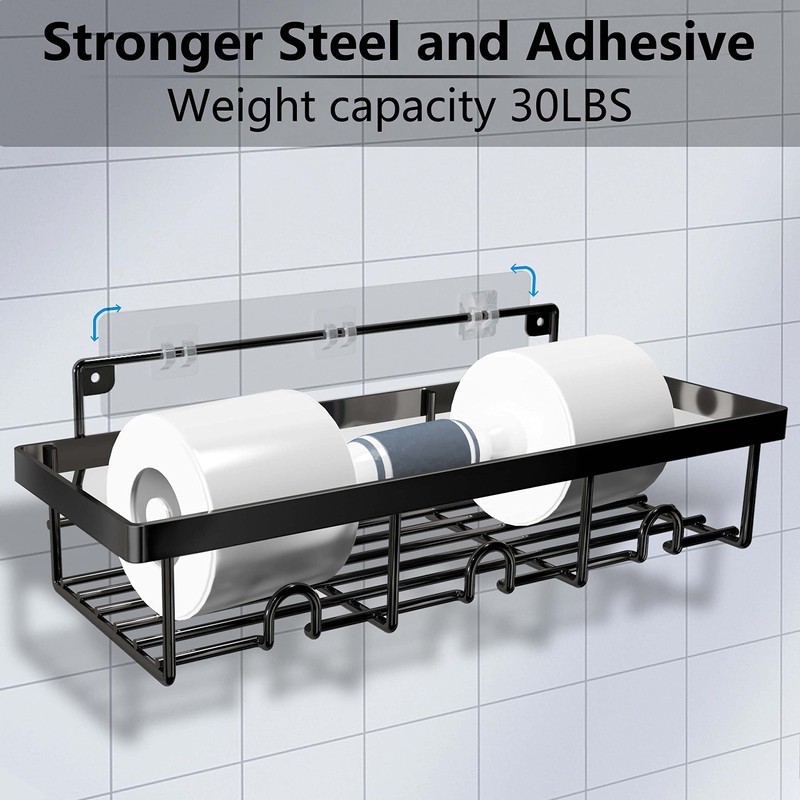 - Large Capacity-There is absolutely no need to worry about the load-bearing capacity of this adhesive shower caddy. With the Waterproof and Stronger Adhesive, this caddy can hold up to 35 pounds.If drilled, hold more capacity.