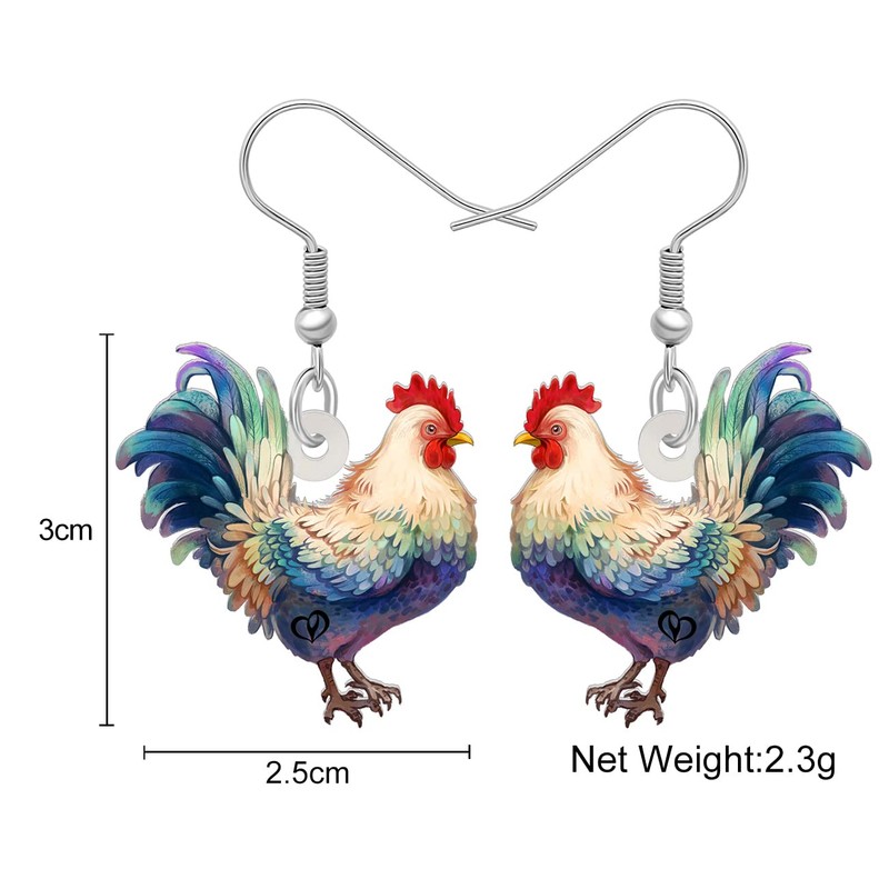 - Hen Chicken earrings are made of acrylic with printed patterns on both sides. They are lightweight, comfortable to wear, and have stainless steel ear hooks with low sensitivity.
