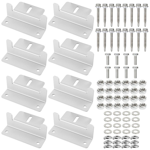 - 【Complete Mounting Kit】This solar panel Z bracket kit comes with 12 aluminium brackets, 24 x 40mm cap screws, 12 x 24mm cap screws, 12 nuts, and 24 washers. The all-in-one package saves you the hassle of purchasing extra parts, making installation straightforward