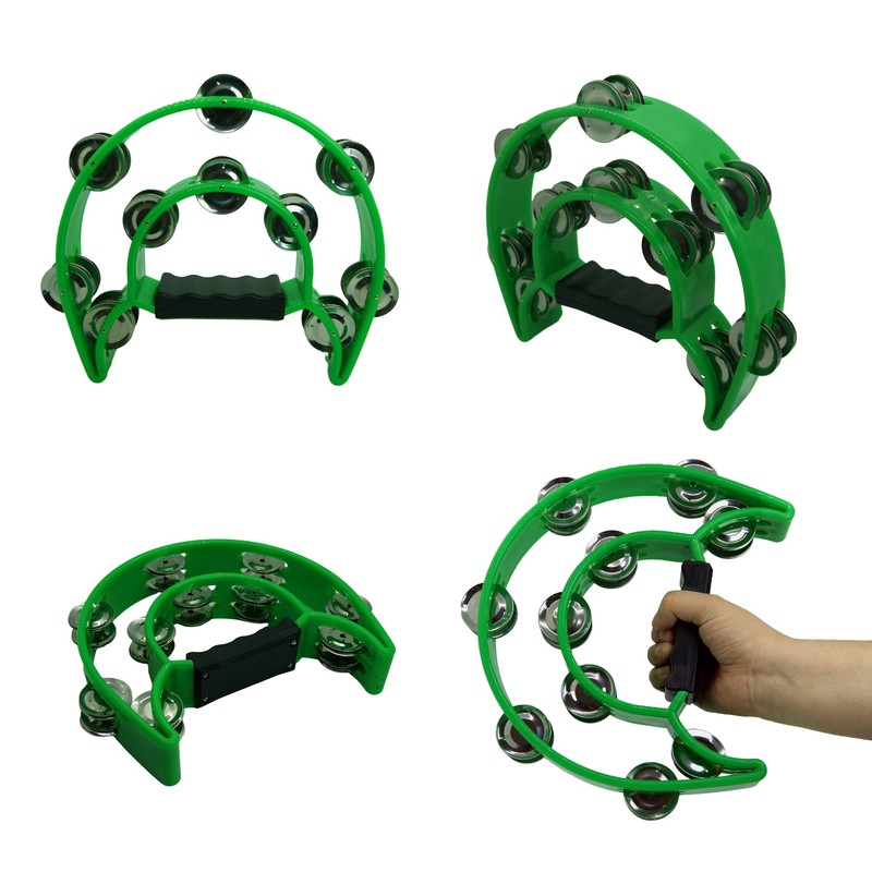 YAYUZEST Half Moon Musical Tambourine Double Row Metal Jingles Hand Held Percussion Tambourines Musical Instrumen with Ergonomic Handle Grip for Adults Church KTV Party (Green)