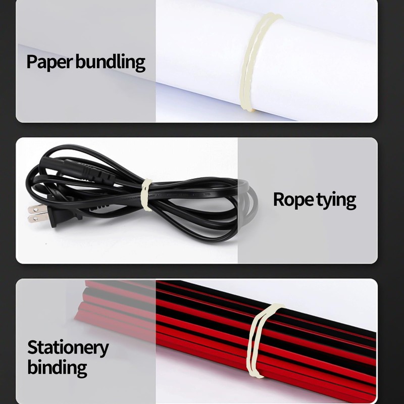 - Versatile Applications: These wide-ranging elastic bands find utility in numerous scenarios. Ideal for bundling office supplies, organizing file folders, securing trash cans, tying small items, and more, these rubber bands are perfect for school, office, home, and kitchen use. Keep your daily life organized and tidy with these versatile and dependable bands.