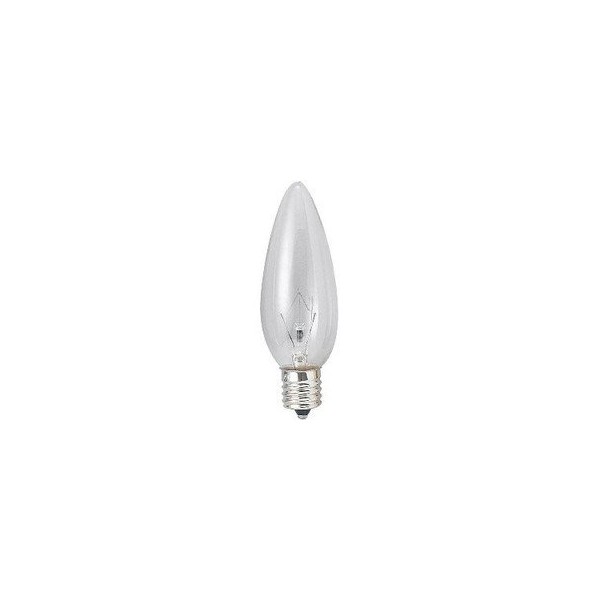 The shape of the glass sphere is a flame type, making it perfect for appliances such as crystal chandeliers. Package form: Header + OPP bag; Base: E12; Power consumption: 40 W; Rated life (h): 1,500; Size: H 3.8 x Diameter 1.3 inches (96 x 32 mm); Weight: 0.4 oz (11 g); Color: Clear; Country of Origin: China