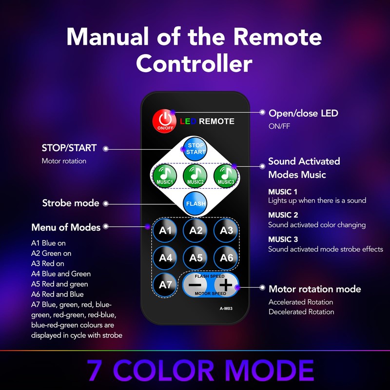 - ✔Remote control: comes with a remote control, the LED disco light can be easily controlled with it, including switching on and off, change colours, changing light modes.