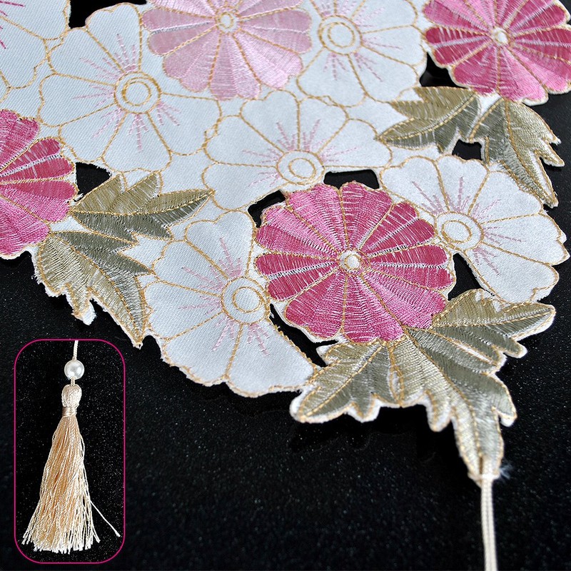 - 3 Colors Flower / Embroidered Tablecloth: Pink, white, red, beautiful and elegant embroidered floral pattern, this natural table runner is surrounded by nature