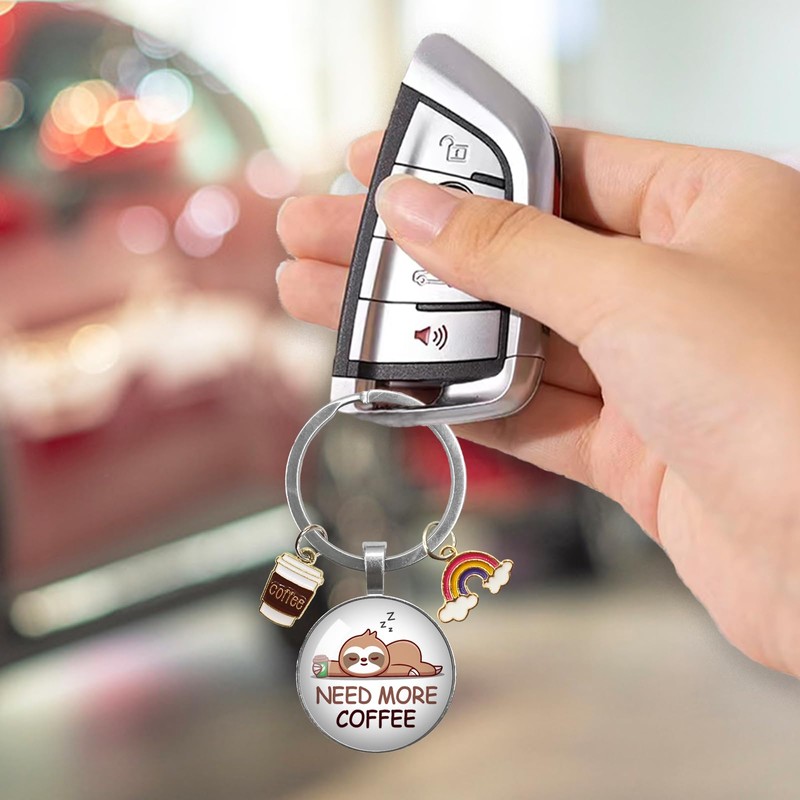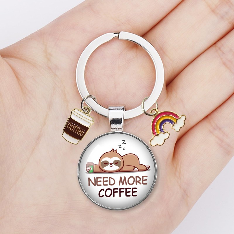 YAZMEEN Need More Coffee Transparent Cabochons Keychain with Coffee Cup and Rainbow Pendant Funny Sloth Keychain Appreciation Keychain Gifts for Coffee Lovers Nurse Doctor Teacher Office Worker