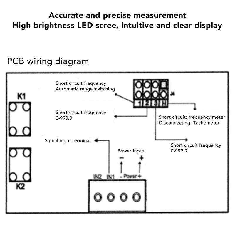 Measurement Range: Frequency: 0.5-9999Hz /0.5-999.9Hz /0.5-99.99Hz (automatic or manual switch)