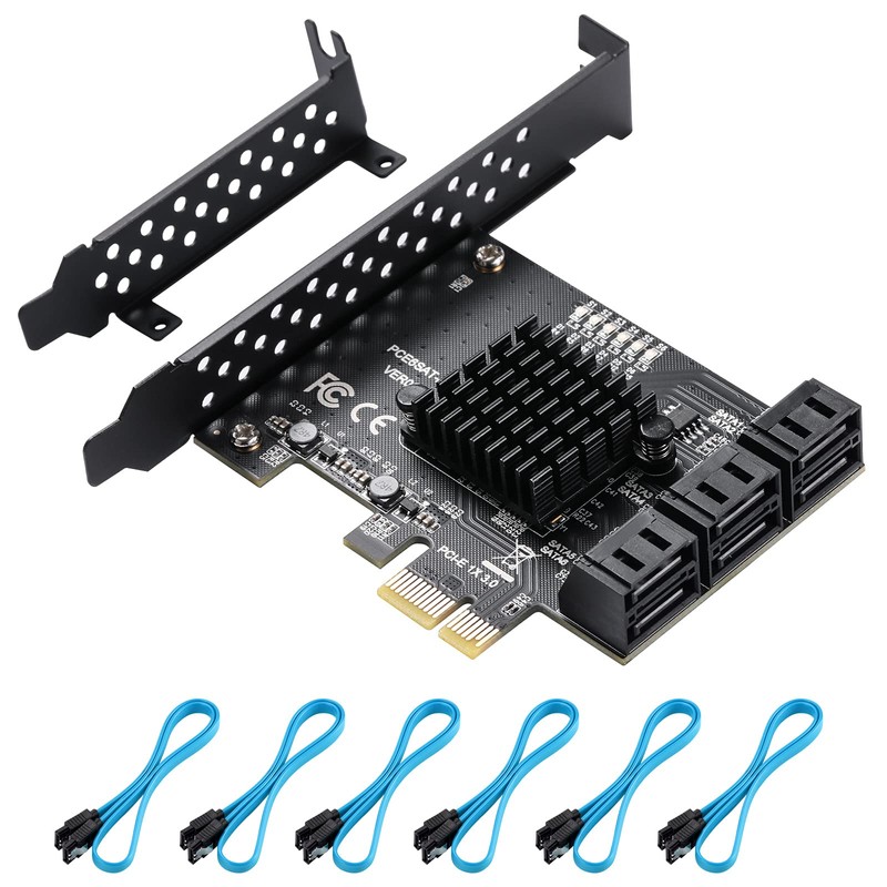 1 x PCIE X1 to 6 SATA 3.0 card 6 x SATA cables