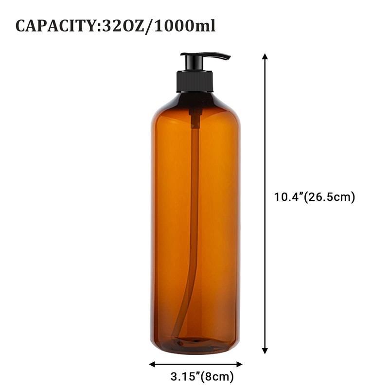 - Pump bottle dispenser Size - Diameter x Height: 8cm x 26cm . Capacity: 32oz(1 Litre).